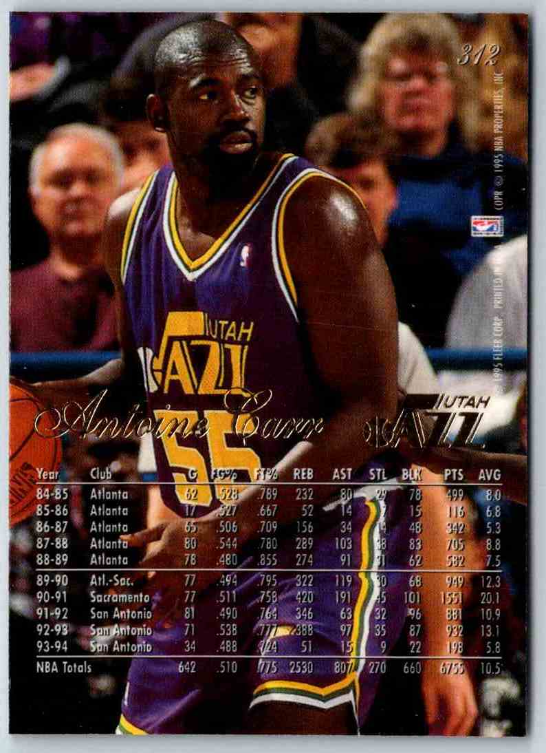 This 1994 Flair Antoine Carr #312 card is a must have for any basketball fan looking to add some serious value to their collection. Featuring stunning artwork, the card captures Carr in the middle of a signature move, poised to take flight and score. On the back of the card is a detailed biography of Carr's career and his many accomplishments. Perfect for any collection, this card is sure to be a conversation starter and appreciated by all.