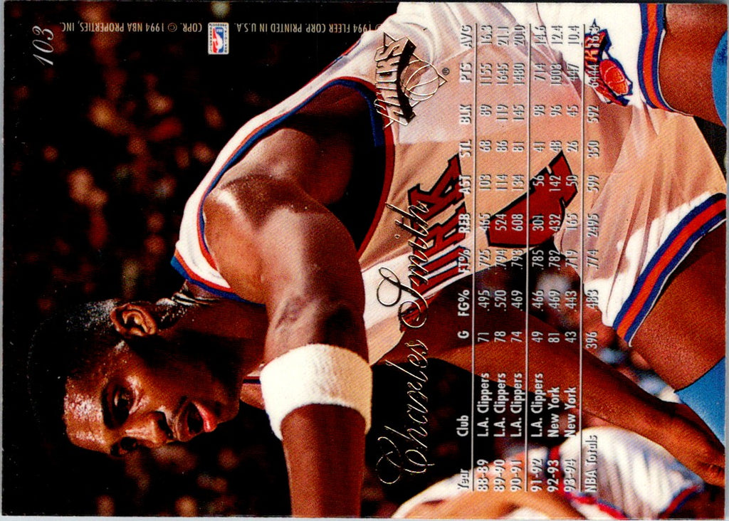 The 1994 Flair Charles Smith #103 New York Knicks card is a must-have for any fan of the iconic basketball team. Featuring a classic design, this card shows Charles Smith in his Knicks uniform, ready to take the court. Crafted with thick cardboard and a glossy finish, this card is perfect for displaying in any room. Show off your Knicks pride with this classic card from 1994!