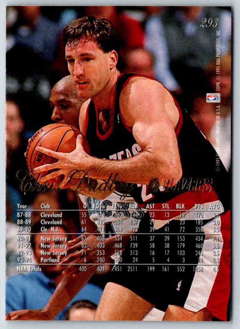 This 1994 Flair Chris Dudley trading card is an essential for any basketball fan's collection. Featuring the Oregon-born basketball player in his signature NBA uniform, this card is sure to be a hit with any collector. With a colorful design, this card is packed with detail and will look great in any collection. Celebrate the career of Chris Dudley with this classic card, perfect for any fan of the NBA.