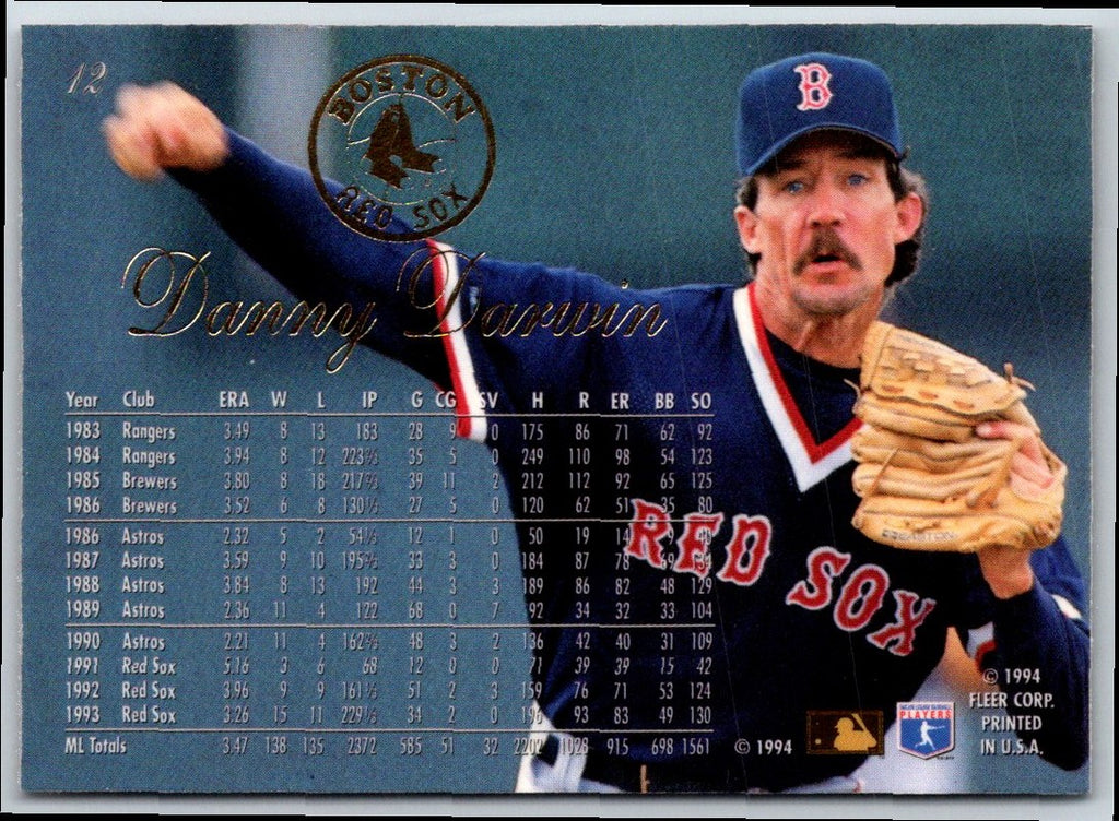 This card is a must-have for any baseball fan! The 1994 Flair Danny Darwin #12 Boston Red Sox card features a classic portrait of the pitcher from the team’s golden era. The card showcases his stats and team logo, and is sure to stand out in any collection. With its vivid colors and strong construction, this card will last for years to come and will be a great addition to any sports memorabilia display. Add this 1994 Flair Danny Darwin #12 Boston Red Sox card to your collection today!