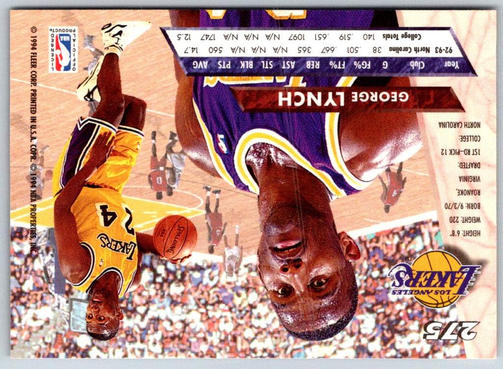 1994 Flair George Lynch #74 Los Angeles Lakers card is a must-have for any basketball fan! This card features an action shot of George Lynch from the 1994 season, when he averaged 15.2 points, 8.1 rebounds, and 2.6 assists per game. The card is printed on high-quality card stock and features a glossy finish. It's a great way to commemorate one of the greatest seasons of George Lynch's career. Add this card to your collection today and relive one of the best basketball seasons of all time!