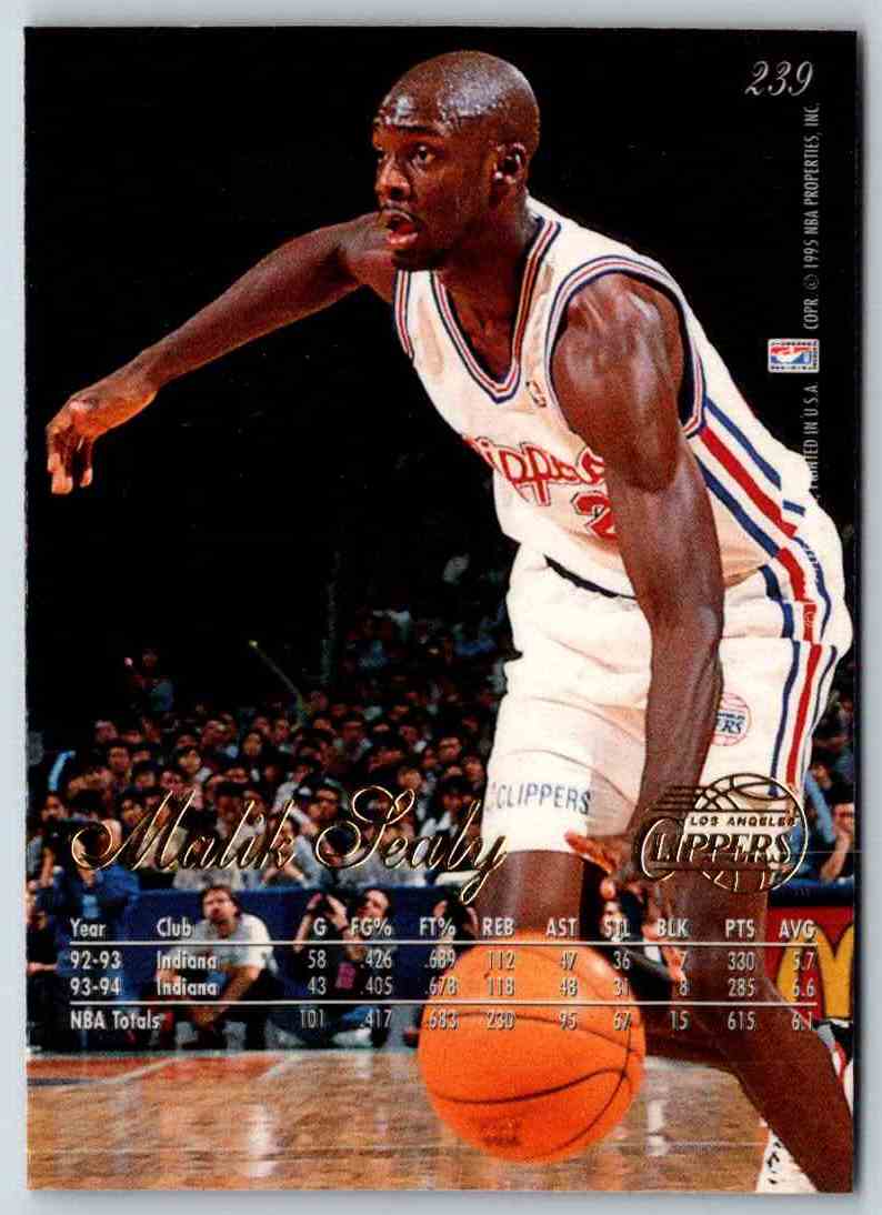 This 1994 Flair Malik Sealy #239 card is a must-have for any basketball card collector. It features a vibrant, action-packed photo of the former Minnesota Timberwolves player in his signature #2 jersey. The card has bold, detailed graphics and is printed on high-quality card stock. It's a great way to add a legendary player to any collection.