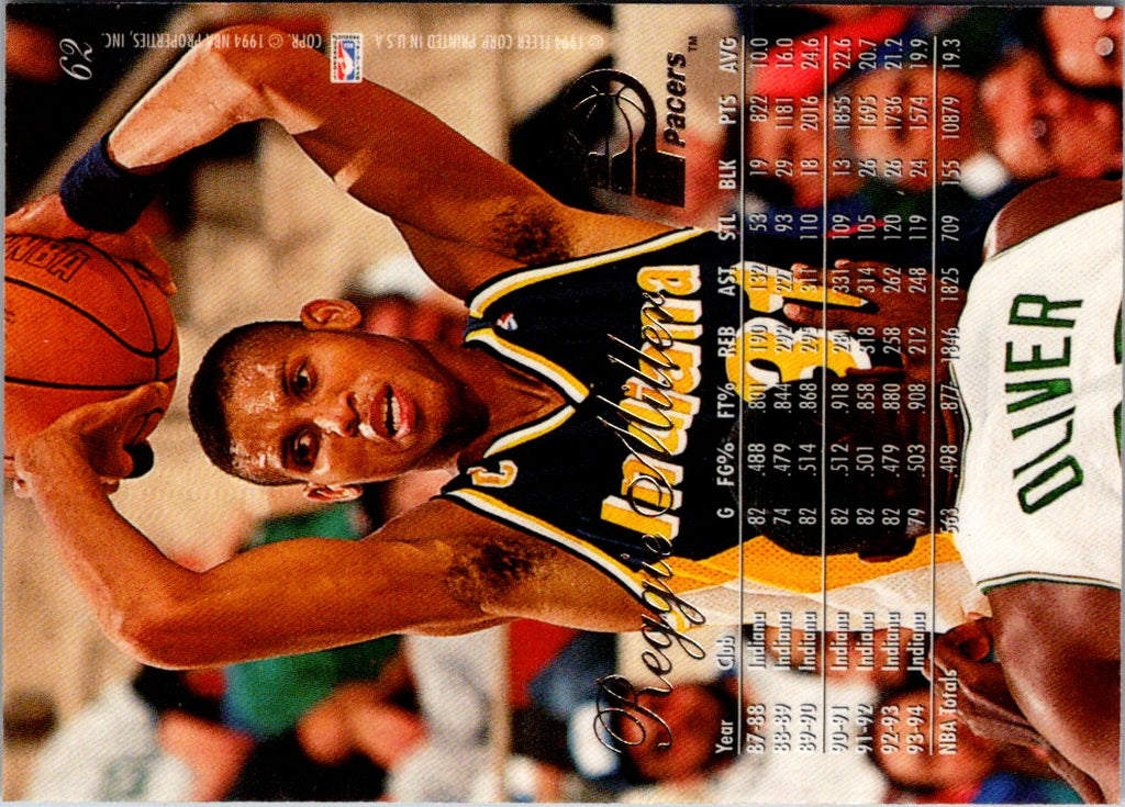 This 1994 Flair Reggie Miller #62 Indiana Pacers card is a great way to commemorate one of the greatest basketball players of all time. Featuring an action shot of Miller driving to the basket, this card captures the explosive energy he was known for. With vivid colors and sharp detail, it is sure to be a treasured part of any collection. Add it to your collection today and celebrate the legacy of one of the all-time greats.