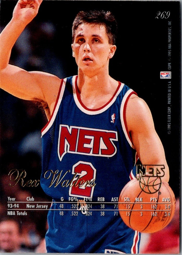 The 1994 Flair Rex Walters #269 New Jersey Nets card is a must-have for any basketball card collector. With its sharp colors and crisp images, this card is sure to make a bold statement in any collection. It features a picture of Rex Walters in his New Jersey Nets uniform, as well as his stats from the 1993-94 NBA season. A great addition to any basketball card fan's collection, this card is sure to become a prized possession.