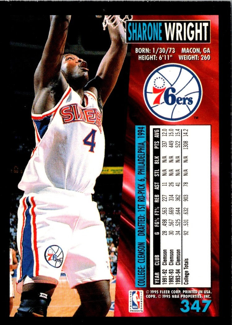 Description: 1994 Fleer Sharone Wright #347 Rookie
