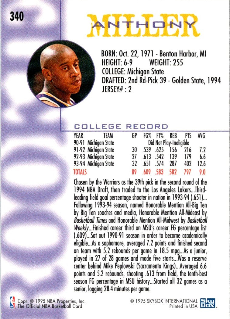 Description: 1994 Hoops Anthony Miller #340 Rookie
