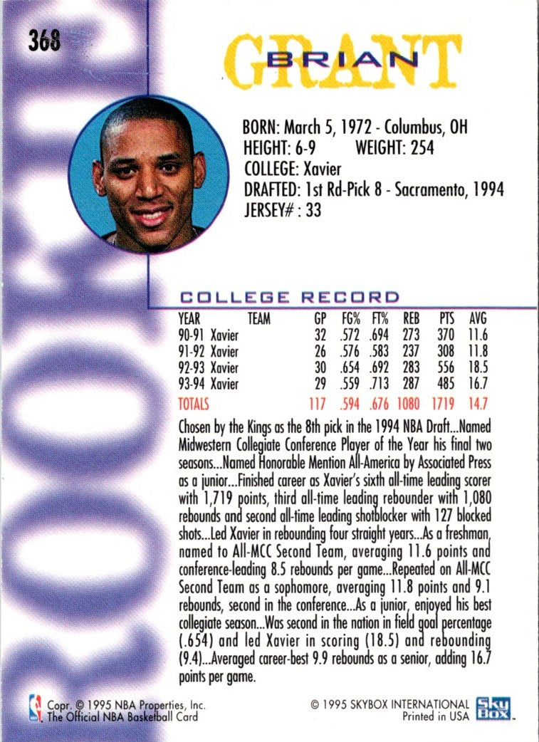 Description: 1994 Hoops Brian Grant #368 Rookie