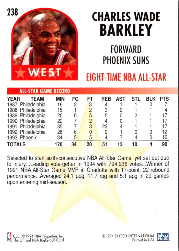 This 1994 Hoops Charles Barkley #238 Phoenix Suns card is a great addition to any basketball card collection. Featuring the Hall of Famer in his Phoenix Suns jersey, this card is sure to bring a smile to any fan's face. With vibrant colors and a glossy finish, this card is sure to stand out in any collection. Get this card today and add the legendary Charles Barkley to your collection.