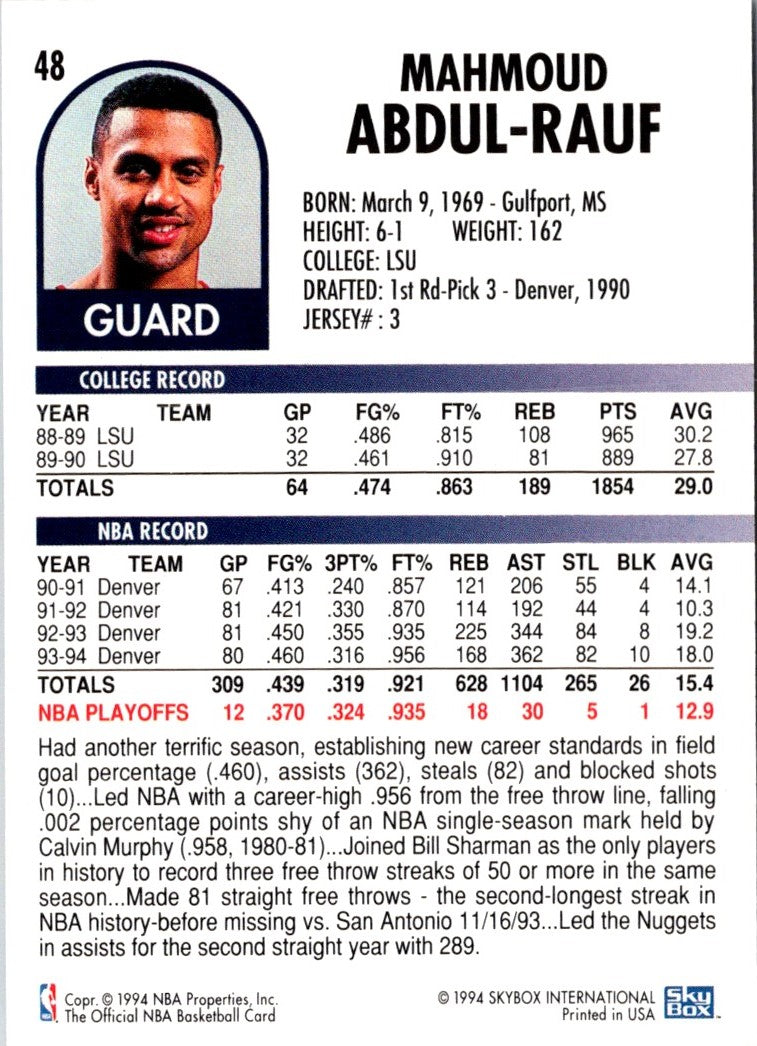 Description: 1994 Hoops Mahmoud Abdul-Rauf #48