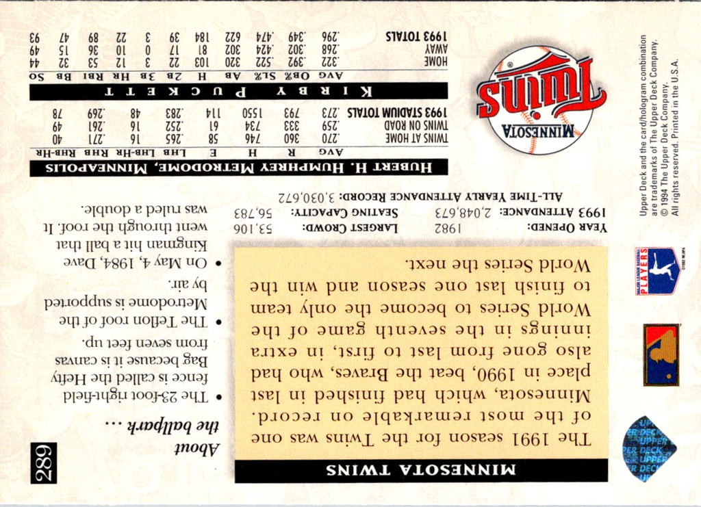 Description: 1994 O-Pee-Chee Kirby Puckett #93