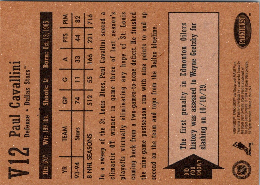 Description: 1994 Parkhurst Vintage Paul Cavallini #V12