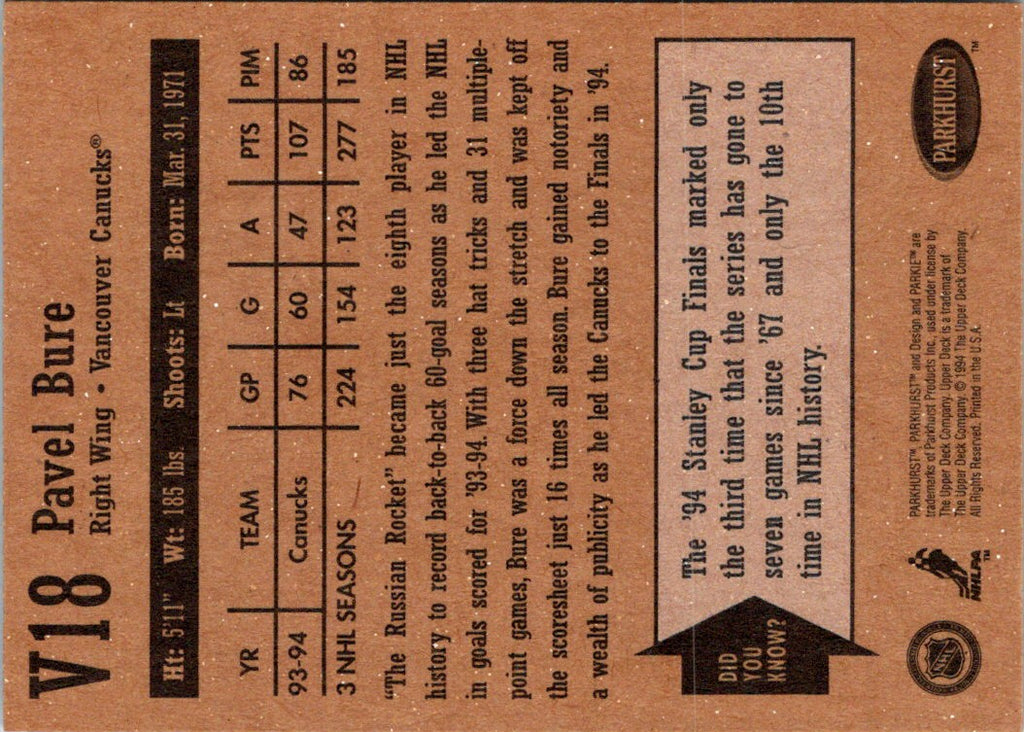 Description: 1994 Parkhurst Vintage Pavel Bure #V18