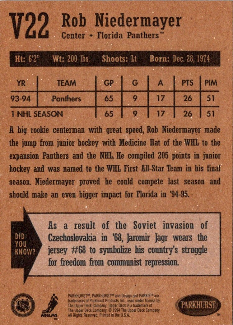 Description: 1994 Parkhurst Vintage Rob Niedermayer #V22
