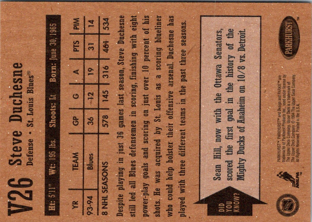 Description: 1994 Parkhurst Vintage Steve Duchesne #V26