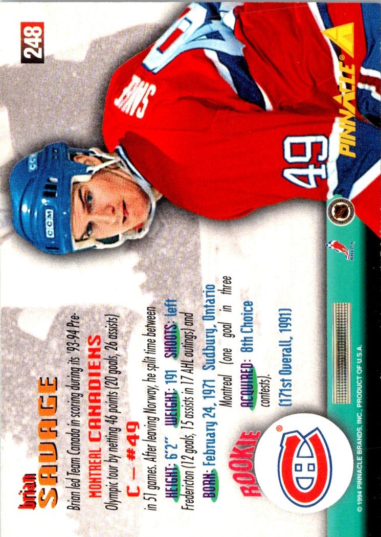 Description: 1994 Pinnacle Brian Savage #248
