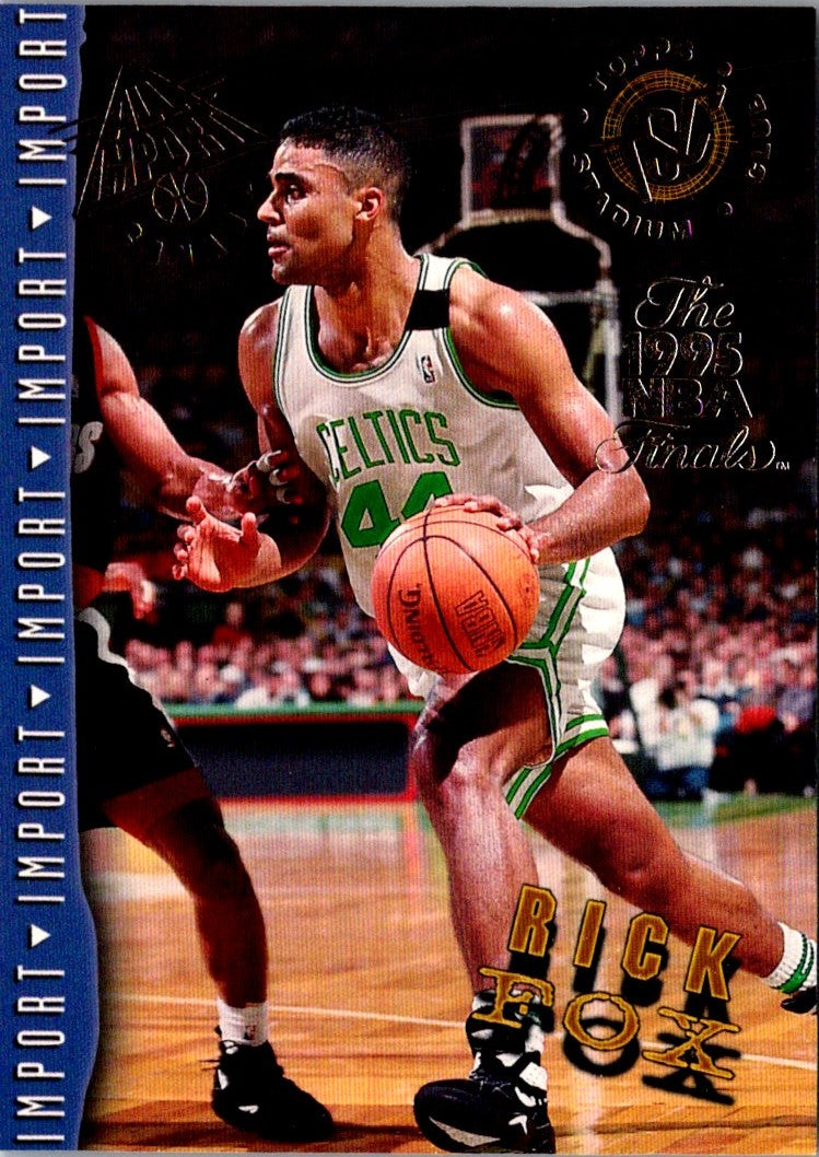 This card features Rick Fox of the Boston Celtics in the 1994 Stadium Club series. This card captures Fox in a classic mid-air layup move, wearing his signature #45 uniform. It is a great addition to any basketball fan's card collection and a great way to commemorate Fox's career with the Celtics. The card is made with high quality materials, and features a glossy finish that makes it stand out amongst other cards. The card also features a detailed image of Fox and the Boston Celtics logo, making it the perfect card for any Celtics fan. Add this card to your collection today and honor Fox's time with the Celtics!