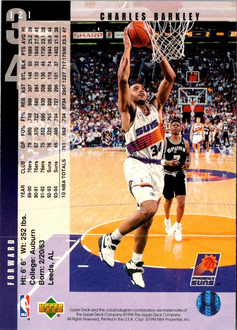 Charles Barkley is a legendary basketball player and was a member of the Phoenix Suns during the 1994 season. This card from the 1994 Upper Deck set is a great addition to any basketball card collection. It features a great action shot of Barkley in his Suns uniform and highlights his achievements in the NBA. With this card, you can show your appreciation for Barkley's career and his impact on the game of basketball. This card is a must-have for any fan of the sport.