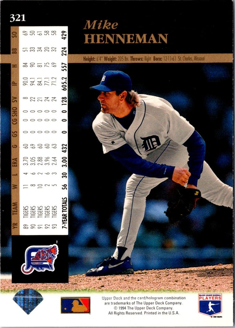Description: 1994 Upper Deck Mike Henneman #321