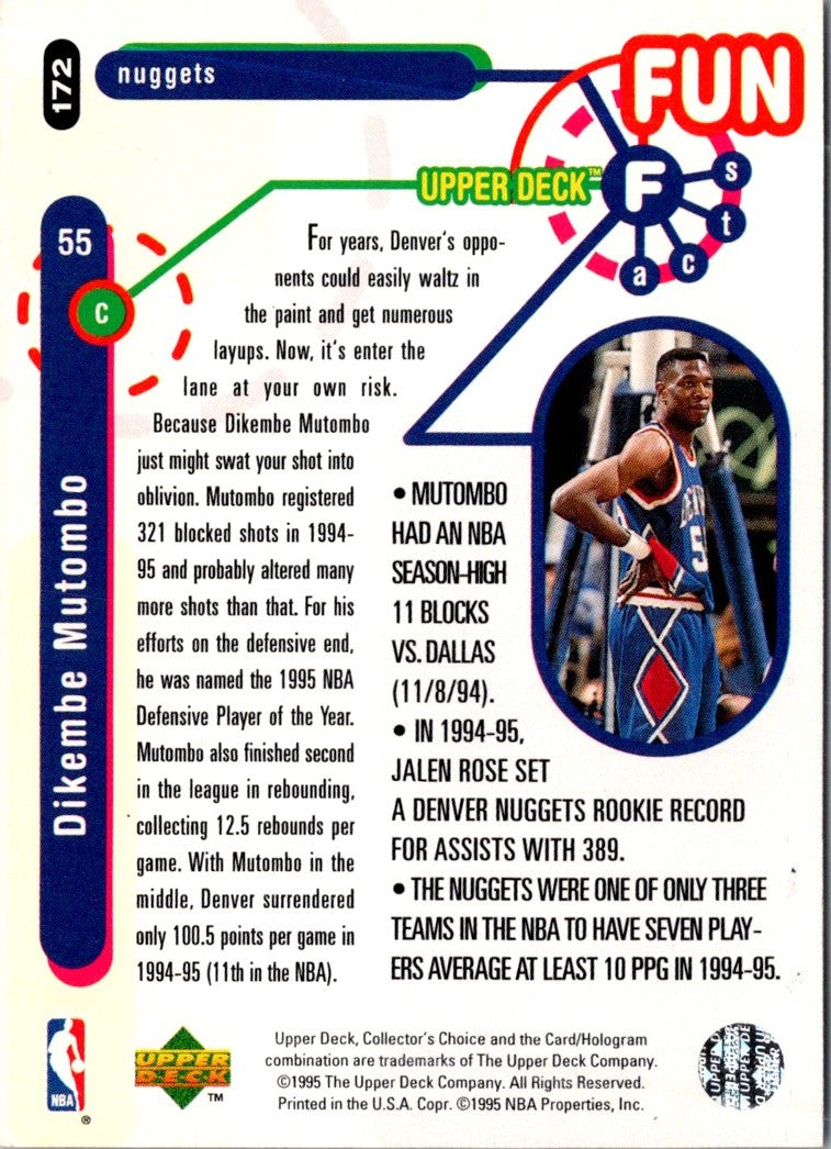 Description: 1995 Collector's Choice Dikembe Mutombo #172