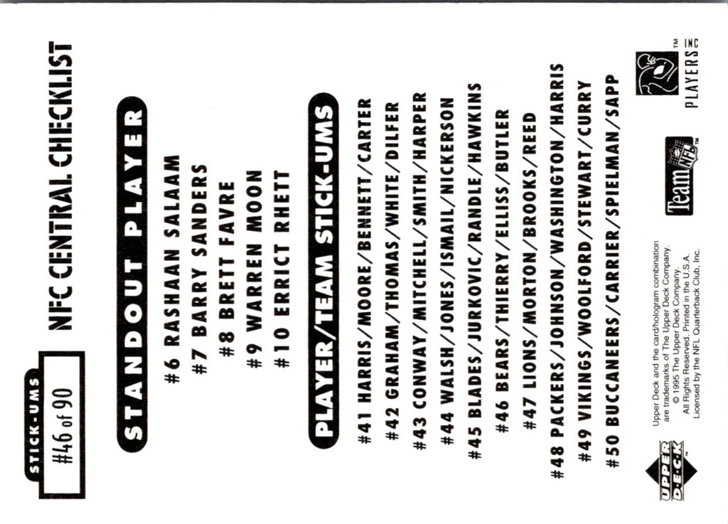 Description: 1995 Collector's Choice Update Stick-Ums Chicago Bears/John Thierry/Luther Elliss/LeRoy Butler #46