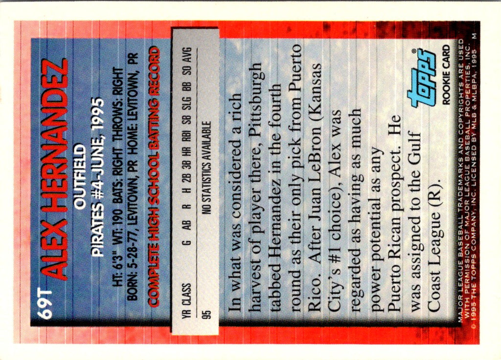 Description: 1995 Topps Traded & Rookies Alex Hernandez #69T Rookie