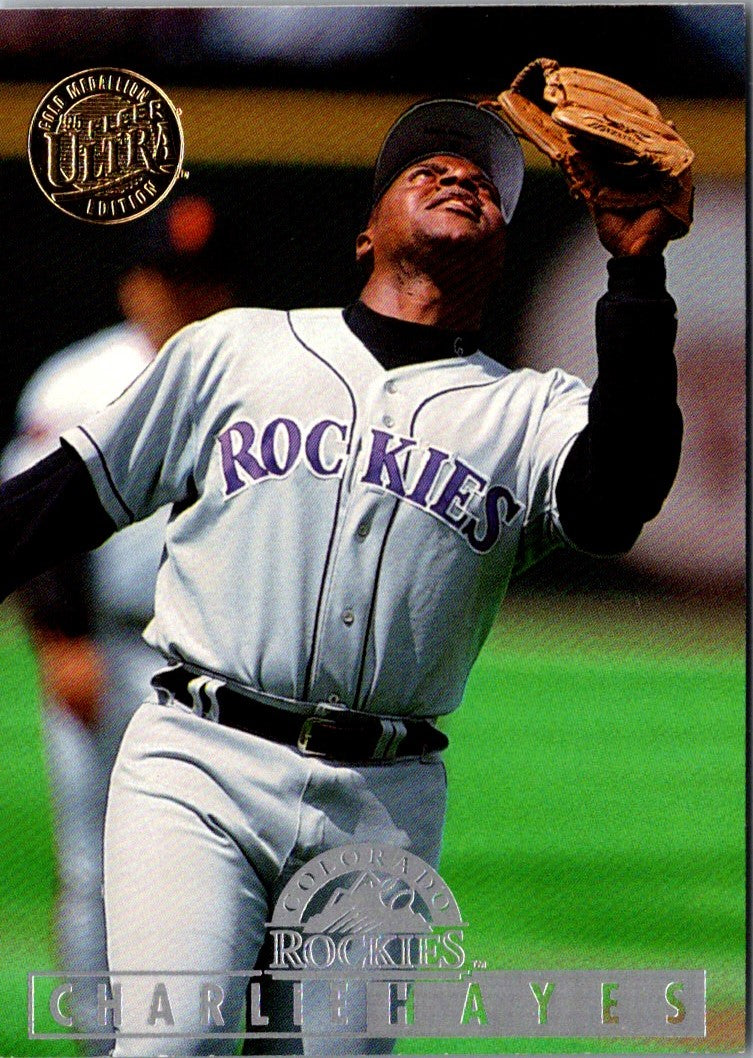 This 1995 Ultra Gold Medallion Charlie Hayes #154 Colorado Rockies card is a must-have for the Rockies fan. Featuring an action shot of the former infielder, the card is printed on premium card stock and features amazing color and detail. This card is also a great addition to any baseball card collection, with its excellent condition and bold design. Whether you're looking to add to your Rockies collection or just want to commemorate a former player, this card is a perfect choice.