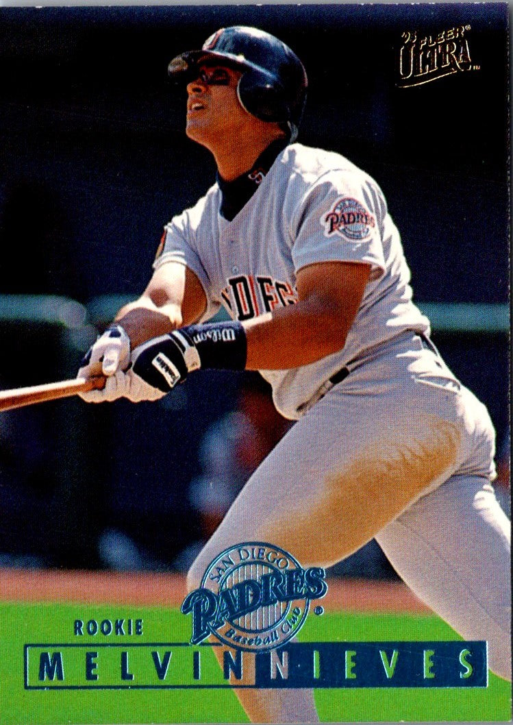 Melvin Nieves is a former Major League Baseball outfielder who played for the San Diego Padres in 1995. This Ultra Gold Medallion card honors his impressive career and is a must-have for any serious collector. This card features a full-color action shot of Nieves during his time in San Diego and is printed on high-quality cardstock. The card back displays Nieves' career stats, making this card an excellent way to commemorate his career. Add this card to your collection to honor the remarkable Melvin Nieves.