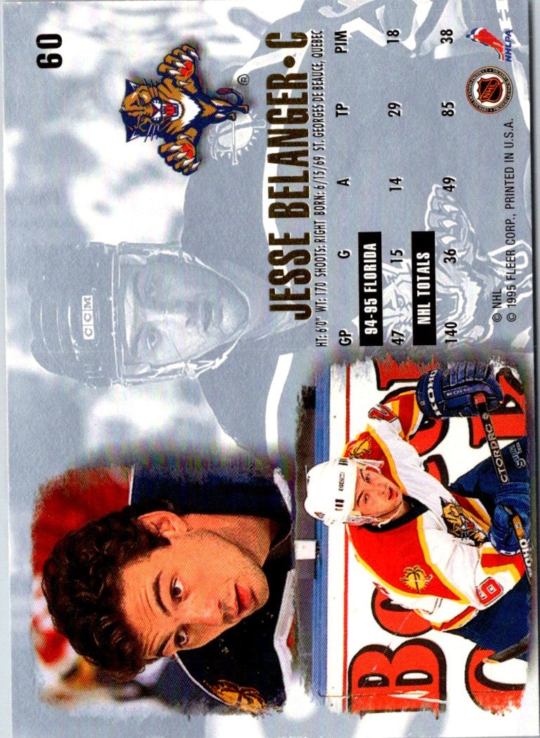 This 1995 Ultra Jesse Belanger #60 Florida Panthers card is the perfect addition to any hockey fan's collection. It features a full-color, glossy image of Belanger in his Panthers uniform along with his name and team logo. The card is in near-mint condition, with no visible wear or scratches. Show your team pride and add this card to your collection today!