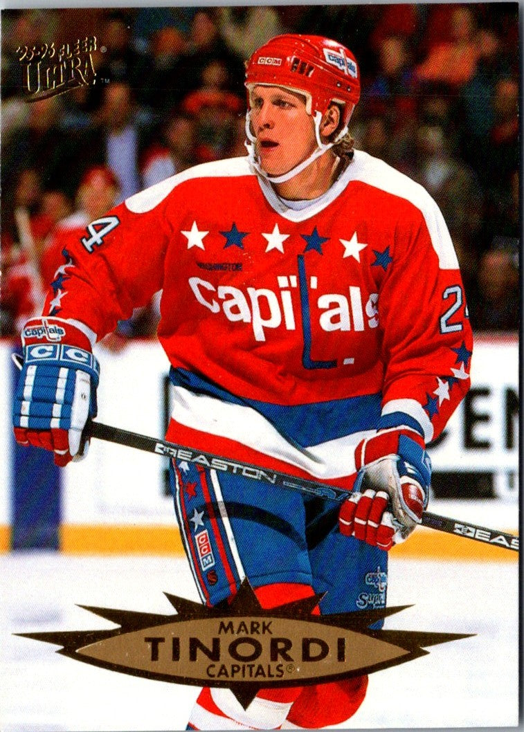 The 1995 Ultra Mark Tinordi #178 Washington Capitals card is a must-have for any hockey fan! This card features a high-quality, full-color image of Mark Tinordi in a Capitals jersey and includes detailed stats and biography information. With a glossy finish and unique design, this card is perfect for any collection. Add this unique card to your collection and show your support for the Washington Capitals!