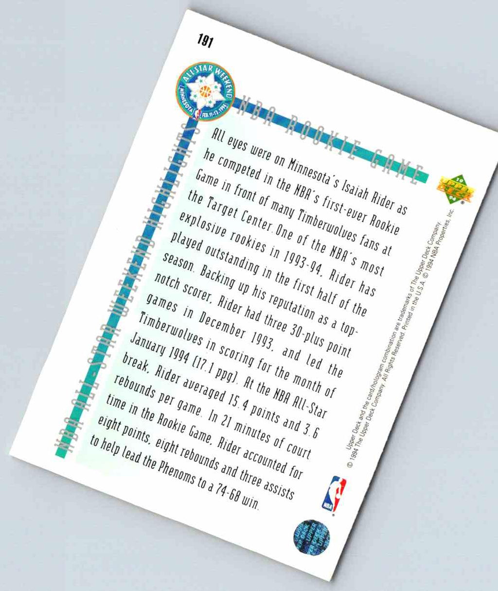 This 1995 Upper Deck Isaiah Rider #191 card is an essential piece of basketball memorabilia that true fans of the game will appreciate. Featuring Rider in an iconic mid-air dunk, this card captures the power and athleticism of the star player. With its realistic shading and lifelike details, this card is a perfect addition to any sports collection. Celebrate Isaiah Rider's amazing career with this timeless classic!