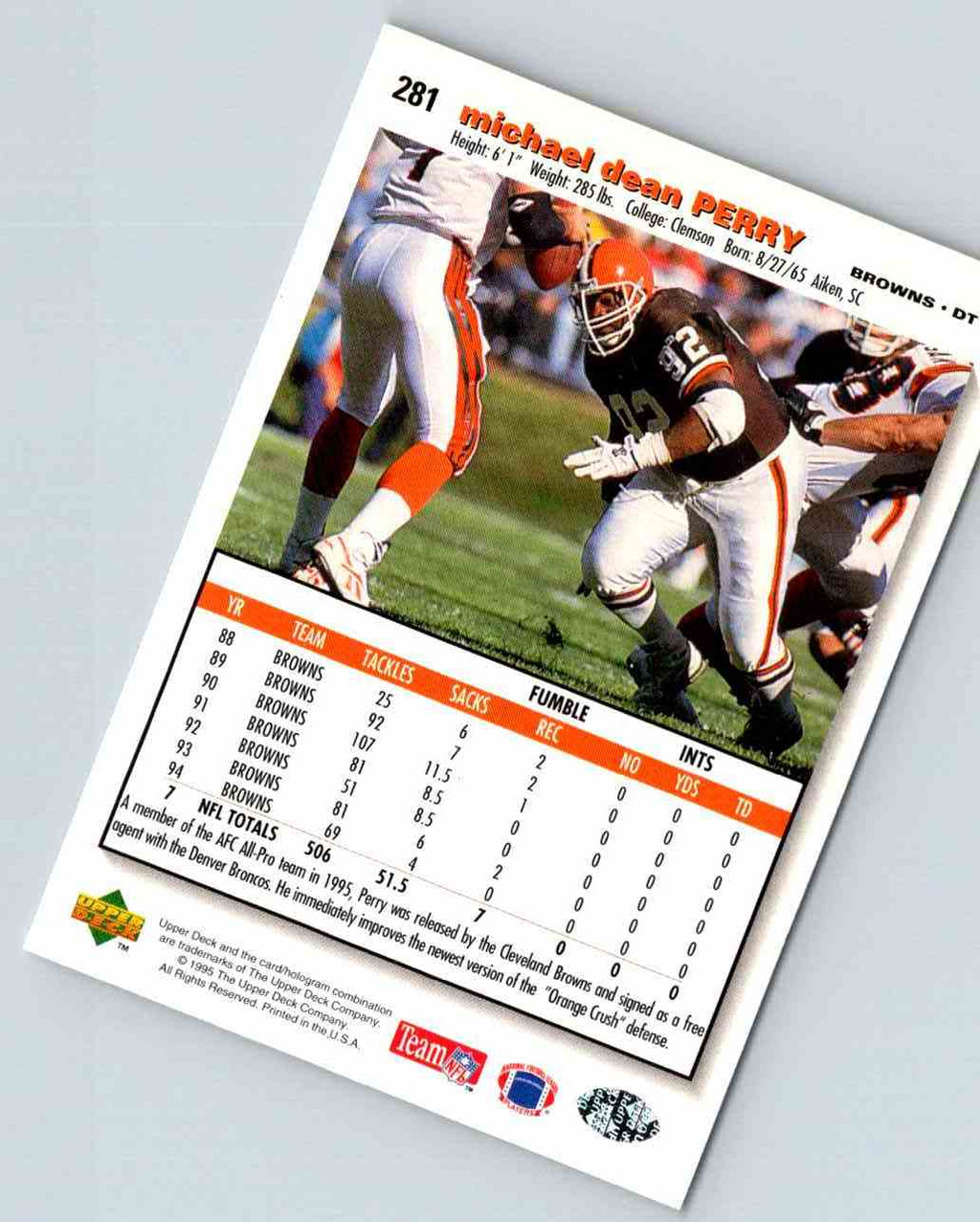 1995 Upper Deck Michael Dean Perry #281