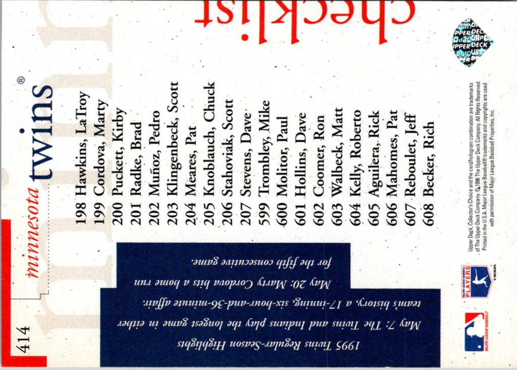 Description: 1996 Collector's Choice Gold Signature Marty Cordova #199
