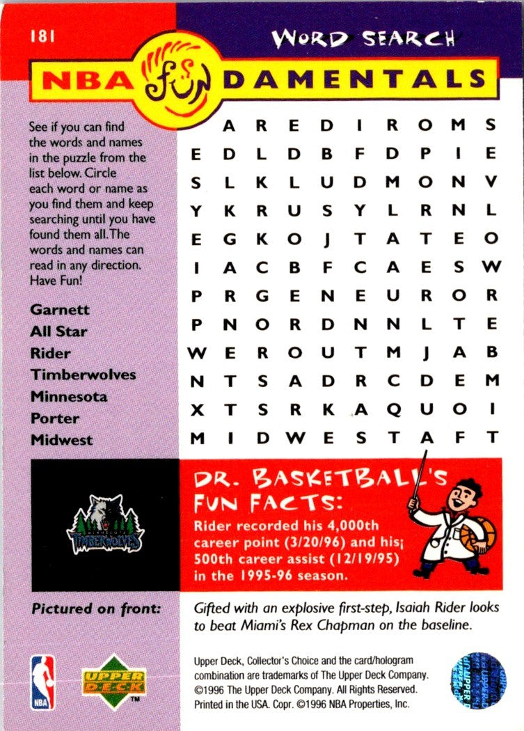 Description: 1996 Collector's Choice Isaiah Rider #181