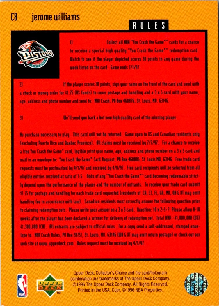 Description: 1996 Collector's Choice You Crash the Game Scoring Silver 2 Jerome Williams #C8B