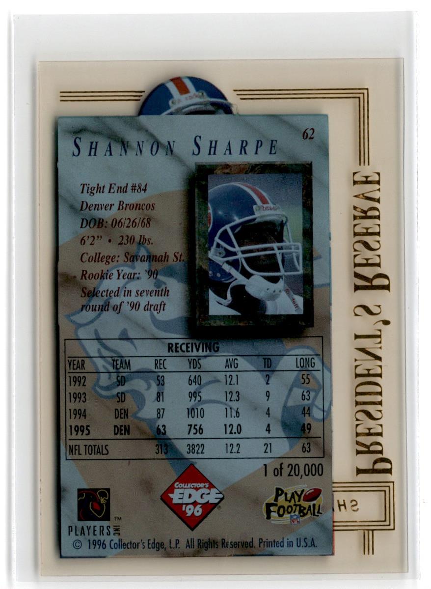 1996 Collector's Edge President's Reserve Shannon Sharpe #62