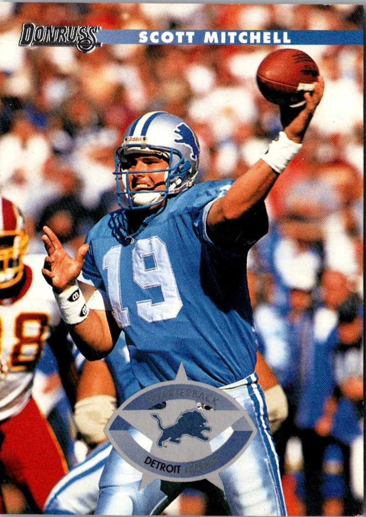 This 1996 Donruss Scott Mitchell #158 Detroit Lions card is the perfect addition to any NFL fan's collection. Show your support for the Lions with this iconic card featuring the team's quarterback at the time, Scott Mitchell. Captured in a classic pose, this card displays the perfect combination of action and nostalgia for any collector. Show off your Lions pride and add this card to your collection today!