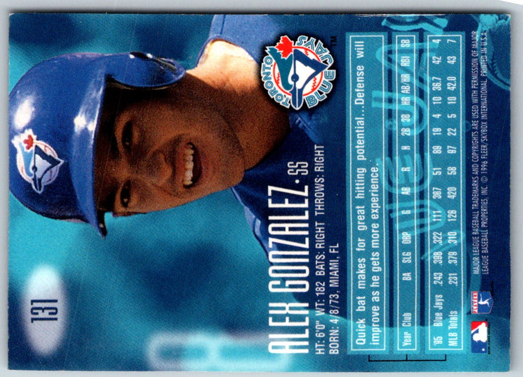 This 1996 E-Motion XL Alex Gonzalez #131 Toronto Blue Jays figurine is the perfect addition to any collection. It features the signature batting stance of Alex Gonzalez, a former professional baseball player. The figurine is crafted with a detailed and accurate representation of Gonzalez, including his uniform and bat. This item is made of high-quality material and is sure to stand the test of time. Add this great piece to your collection today and show your support for the Toronto Blue Jays!