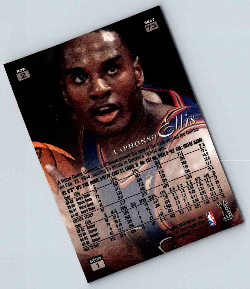 This 1996 Flair LaPhonso Ellis card is an essential for any basketball fan or collector! The #73 card features an action shot of Ellis in an eye-catching yellow and blue Denver Nuggets jersey. The card also showcases Ellis’ career stats on the back, so you can learn more about the five-time NBA All-Star. A must-have addition to any basketball card collection, this card will be a standout in any display.