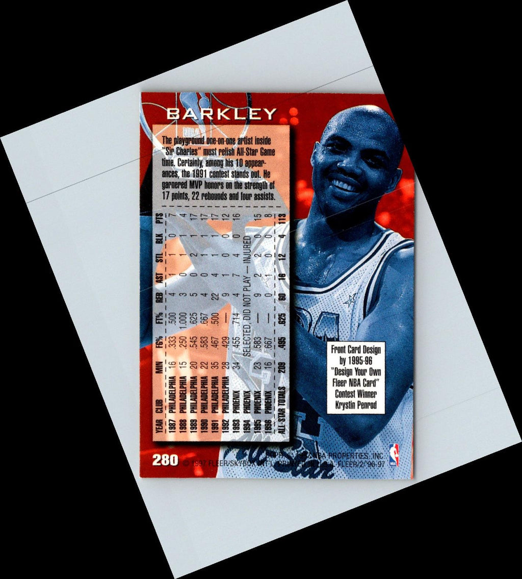 This 1996 Fleer Charles Barkley #280Houston Rockets card is the perfect addition to any basketball fan's collection. Featuring a crisp, full-color image of Barkley in action, this card is sure to be a standout in your collection. The back of the card displays Barkley's impressive stats and highlights from his career, making it a great keepsake for any fan. With its bold colors and unique design, this card is sure to add a bit of flair to any collection. Get your hands on this classic piece of memorabilia today!