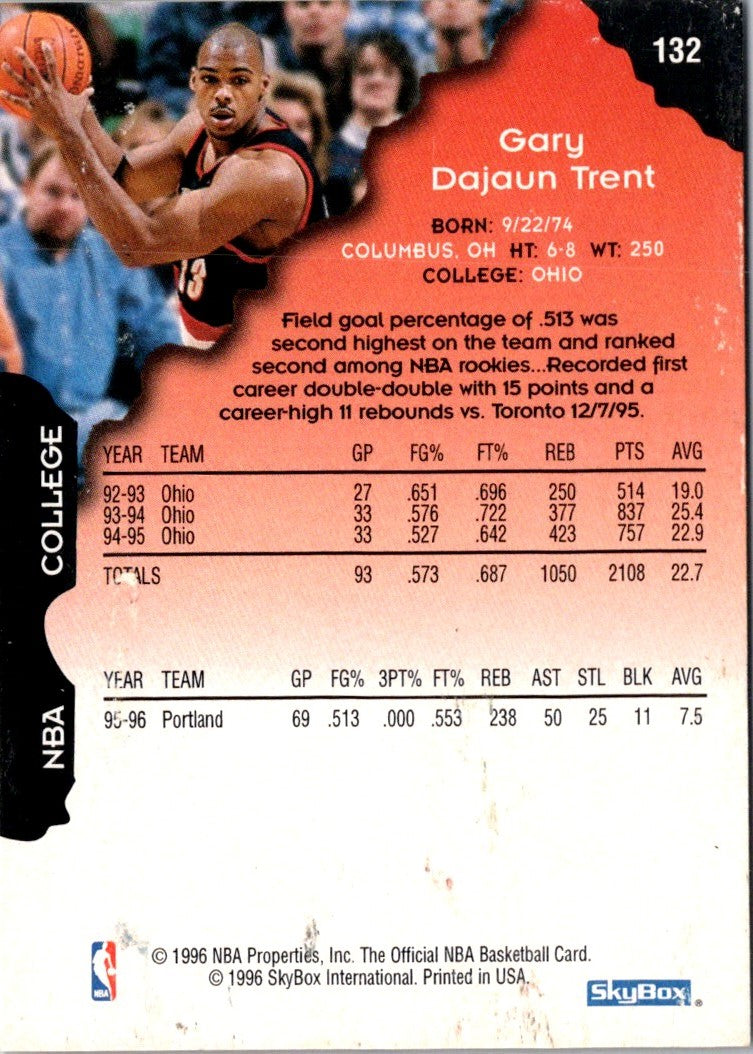 This 1996 Hoops Gary Trent card #132 celebrates the Portland Trail Blazers' star player. His iconic pose on the card is sure to make any collector smile. Featuring a glossy finish, this card is sure to stand out from the rest. This card is perfect for any Portland Trail Blazers fan or basketball card collector. Add this card to your collection today and own a piece of basketball history.