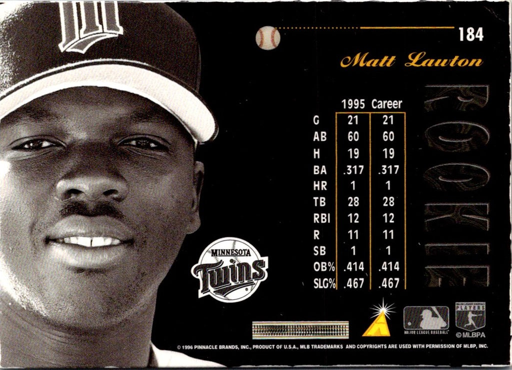Description: 1996 Pinnacle Aficionado Matt Lawton #184 Rookie