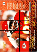 This 1996 Pinnacle Tamarick Vanover #9 Kansas City Chiefs card is a must-have for any collector of Chiefs memorabilia. Showcasing the dynamic, speedy wide receiver in his classic blue and red uniform, this card is a great representation of the Chiefs' 1996 season. With vibrant colors and a glossy finish, it's the perfect addition to any Chiefs collection. This card is sure to be a conversation starter, with Vanover's impressive statistics and photos of him making plays on the field. Get your hands on this unique piece of Chiefs history today!