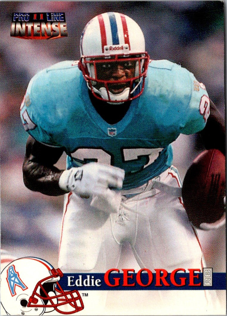 This 1996 Pro Line II Intense Eddie George #91 Houston Oilers card is a must-have for any collector or fan. The card features an action image of George in his Houston Oilers uniform, along with his full name and stats. A great way to commemorate the legendary running back's career. The card is in near-mint condition and still has its original gloss. Add this amazing piece of football memorabilia to your collection today!