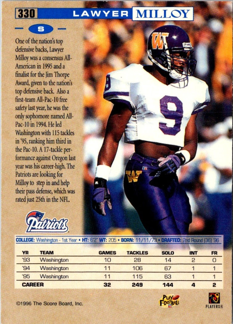 1996 Pro Line National Lawyer Milloy #330