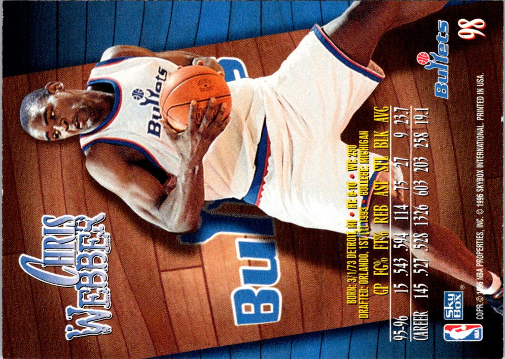 Description: 1996 SkyBox Z-Force Chris Webber #98