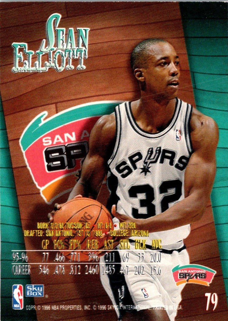 This SkyBox Z-Force 1996 card celebrates the career of Sean Elliott, an incredible player from the San Antonio Spurs. The card features a portrait of Elliott, showcasing his impressive style on the court. This card is a must-have for any collector of basketball cards, or any fan of the NBA. It is a unique piece of memorabilia that honors Elliott's impressive career. Add it to your collection today!