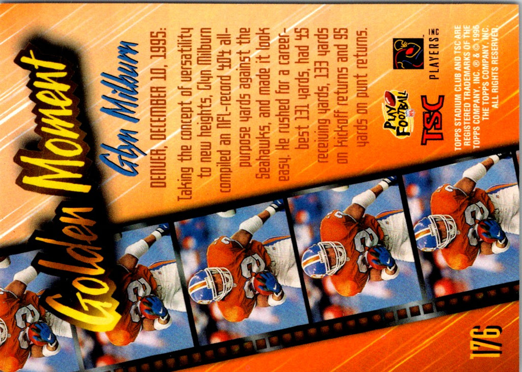 Description: 1996 Stadium Club Glyn Milburn #176