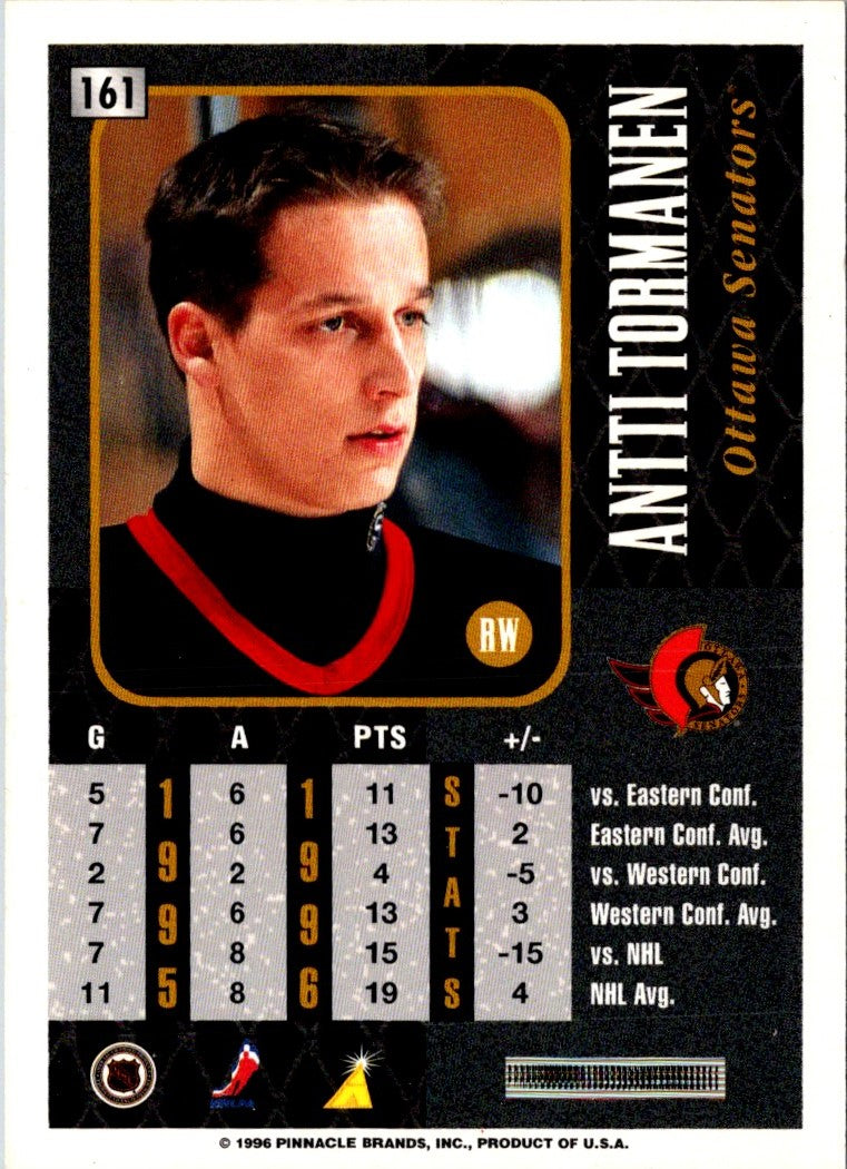 This 1996 Summit Antti Tormanen #161 Ottawa Senators card is a must-have for all hockey card collectors. Featuring a full-colour action shot of Tormanen, the card is a vivid reminder of the forward's time on the team. The back of the card lists his stats and career highlights. This card is an excellent addition to any hockey card collection and a great way to commemorate Tormanen's time with the Ottawa Senators.