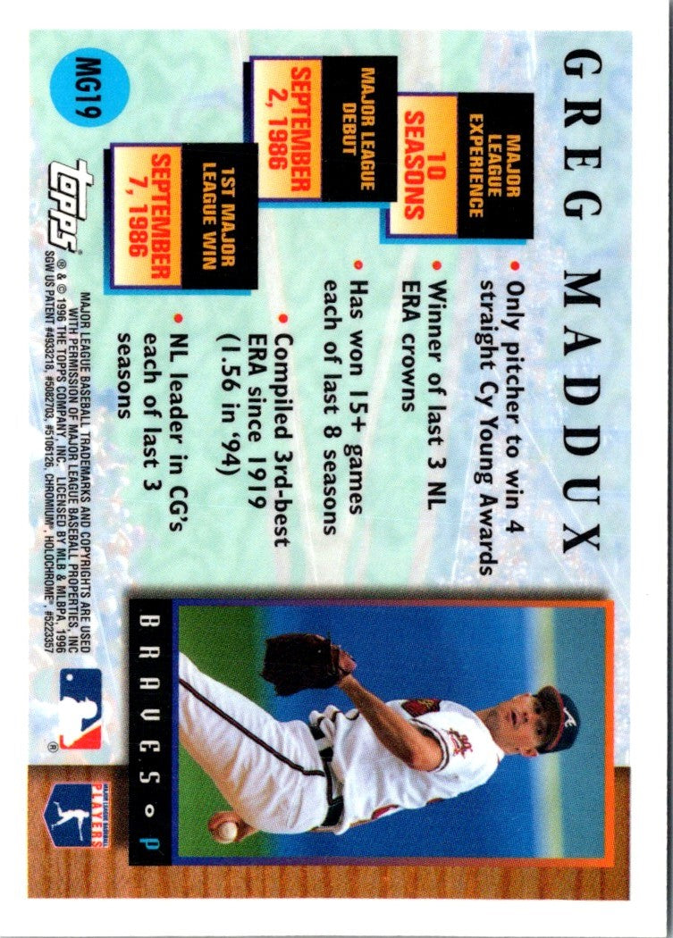 Description: 1996 Topps Chrome Masters of the Game Greg Maddux #MG19