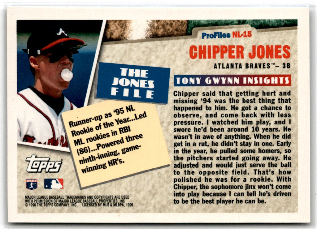 Description: 1996 Topps Profiles by Tony Gwynn NL Chipper Jones #NL-15